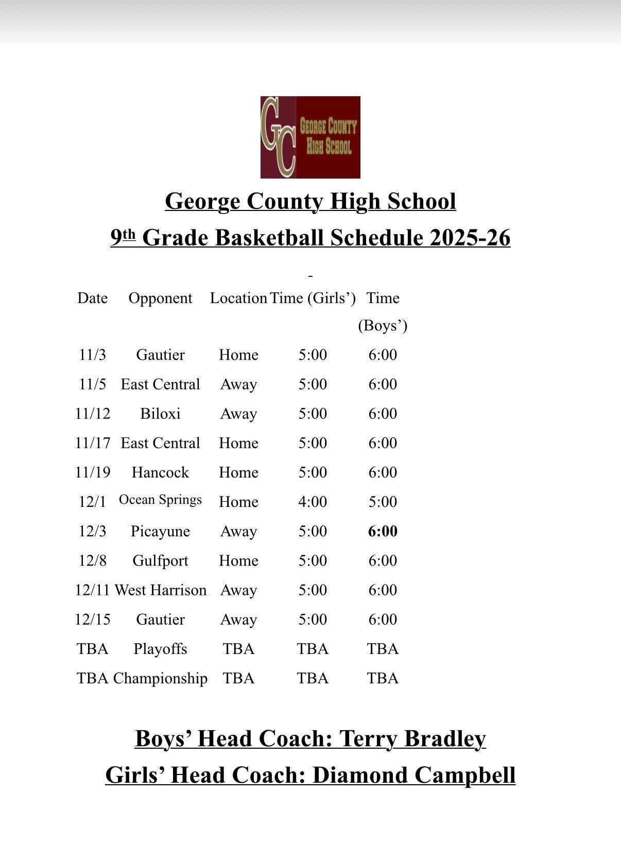 504 Coordinator: Julie Durgin (julie.durgin@gcsd.us) / GCSD Title IX Coordinator: Athletic Director/Director of Operations 601-947-6993